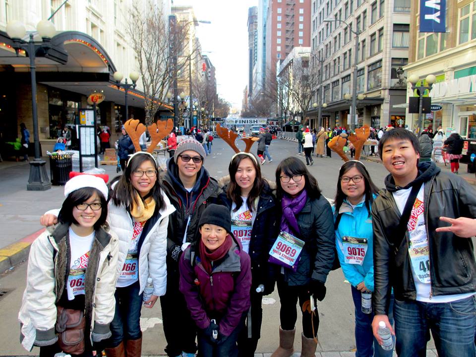 The IPM (International Student Mentors) organized a Shoreline Community College team for the 2013 Jingle Bell Run/Walk, a fundraiser for Arthritis. The 23 member Shoreline Community College team ran/walked 5K (3 mile) with 1,022 people on the morning of December 8th in downtown Seattle. Both Shoreline Community College students and staff members had a great time staying warm and taking part in this community event. This is an annual tradition for the IPMs, so we look forward to walking with you at the next Jingle Bell Run/Walk.